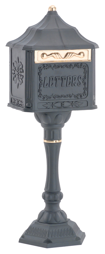 Larger than the similarly designed victorian pedestal locking mailboxes. Solid brass accent pieces...No brass plating. This mailbox does not have an outgoing mail receptacle.