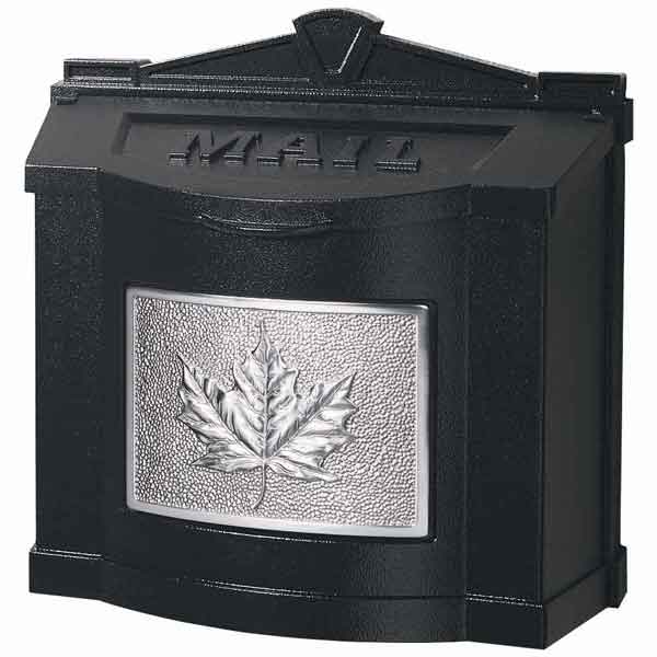Gaines Wall Mount Mailbox Black w/Satin Nickel Leaf