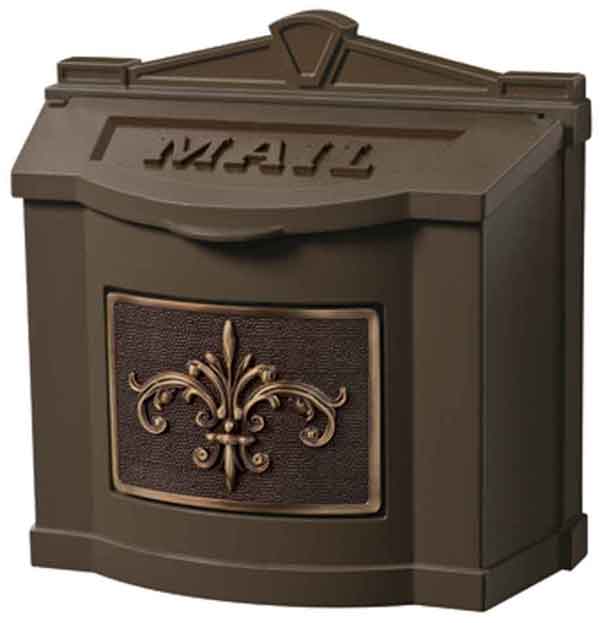 Gaines Wall Mount Mailbox Bronze w/Antique Bronze Fleur De Lis