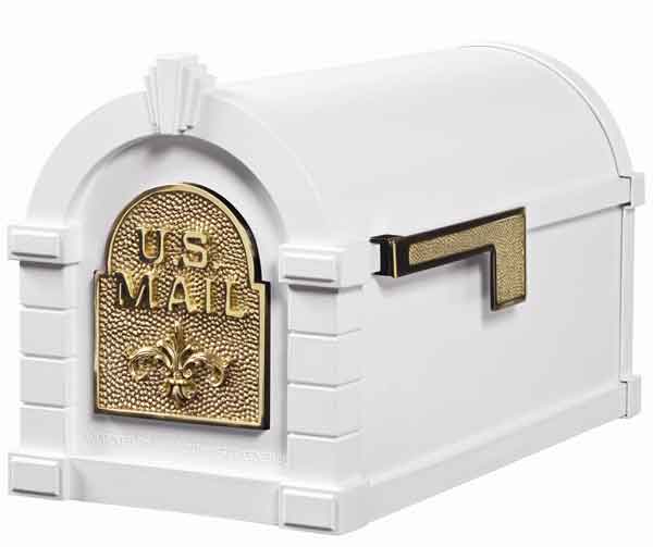 Keystone Mailbox White w/Polished Brass Fleur De Lis