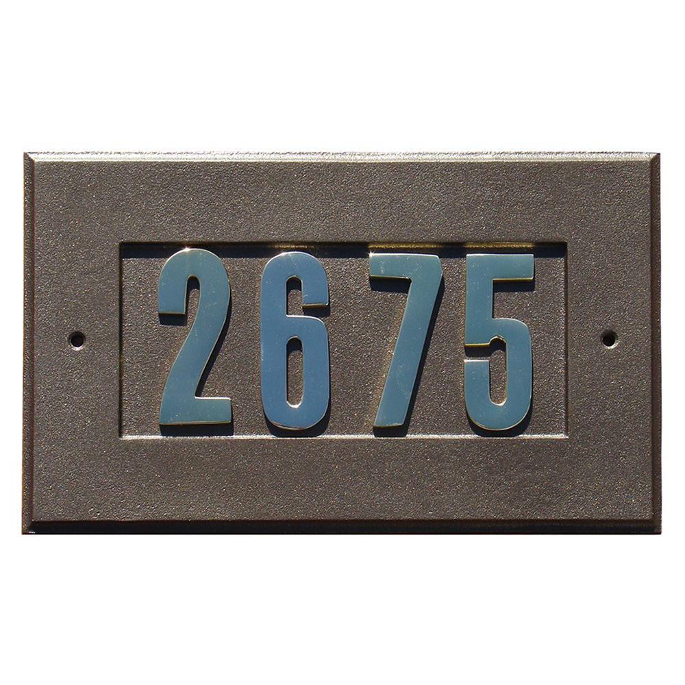 Choice of three colors to match the mailbox insert and includes up to five 3" high brass colored numbers. Address plaque available with purchase of Manchester column insert mailbox.