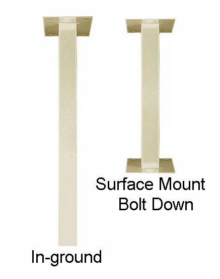 Heavy duty galvanized steel Oasis in-ground and surface mount mailbox post. Surface mount post is designed to be bolted to a concrete or similar solid surface. 28" high.