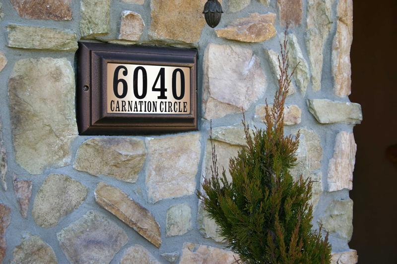 The Edgewood™ Lighted Address plaque made of cast aluminum is an elegant way to display a home address. These low-voltage fixtures come in 5 styles and 5 finish options with 4" vinyl numbers and letters. Visible at over 100 feet away, the Edgewood™ provides fast and accurate address identification for guests, deliveries, and emergency vehicles. The Edgewood™ can be attached to your existing low-voltage doorbell transformer. If required, two transformer models are available: plug-in or j-box. Dimensions are 13-3/4"W x 8-7/8"H x 2-1/2"D. Up to five 4"H numbers. Please note that colors of address plaques and mailboxes from different manufacturers may not match. Bronze is the same color French bronze.