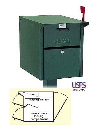 Made entirely of aluminum, these U.S.P.S. approved 4300 series mail chests feature both a front and rear access locking door. Mail is deposited through a non-locking access panel on the front. Each unit includes an outgoing mail tray, a lock with two (2) keys on each door (keyed alike) and an adjustable red signal flag. Optional non-locking thumb latch is available with purchase of the mailbox. Units are available in a powder coated black, white, green or silver finish. Includes your choice of in-ground or surface mount post. 14-3/8" W x 17-1/4" H x 23" D with an 11"w x 2"h incoming mail slot. Optional newspaper holders have a solid back and include mounting hardware to easily attach to mailbox post.